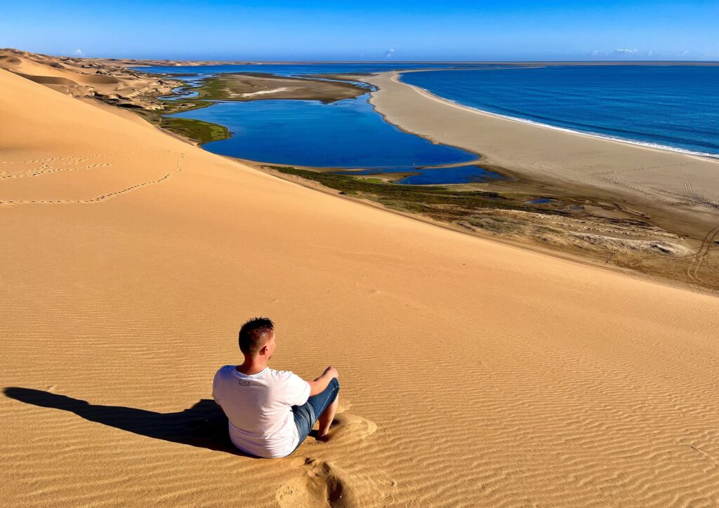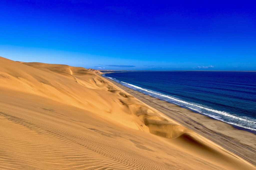 Past the pink lakes, the desert unfolds, setting the stage for some of Namibia’s most famous desert tourism activities.