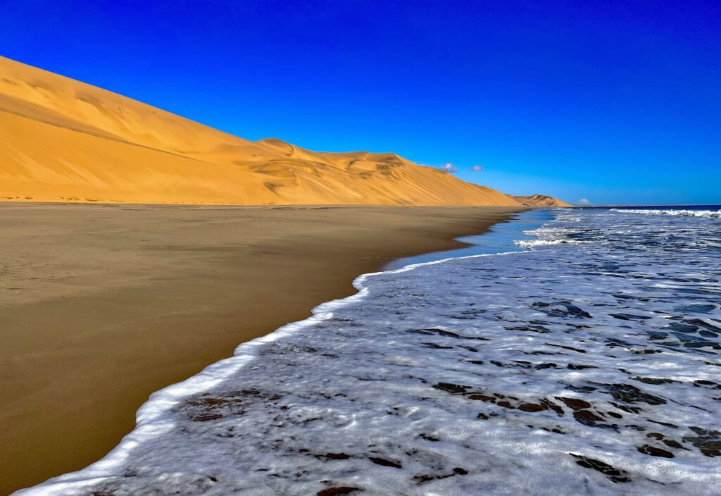 Sandwich Harbour offers an extraordinary desert experience where the vast, arid expanse meets the immense Atlantic Ocean in a stunning display of nature’s contrasts, where the dunes plunging into the lagoon creates a dramatic and picturesque landscape. The sand dunes here rank among the tallest in the world, with Dune 7 standing out as the highest, soaring majestically to 383 meters. I had already been told that anything I had seen in Dubai or Jordan was nothing in comparison, and I came to realise that was no exaggeration!