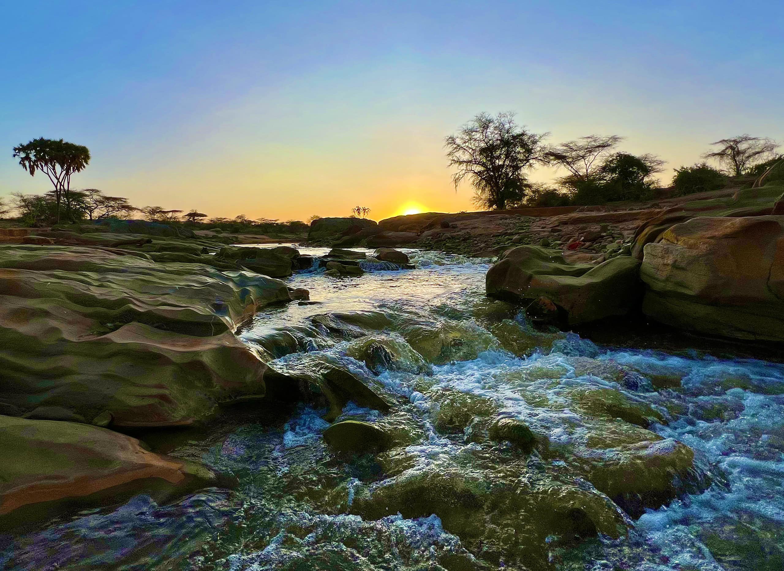 We finished off the game drive just in time for another epic attraction: Sundowners at the river bed. The at times mighty Ewaso Ngiro river becomes a mere trickle during prolonged droughts, causing big parts of the riverbed to dry up. That was that the case during our visit, so why not have a sundowner there? Some bubbly, a bonfire, and live guitar music to go with the sunset. That’s the kind of stuff memories are made of!