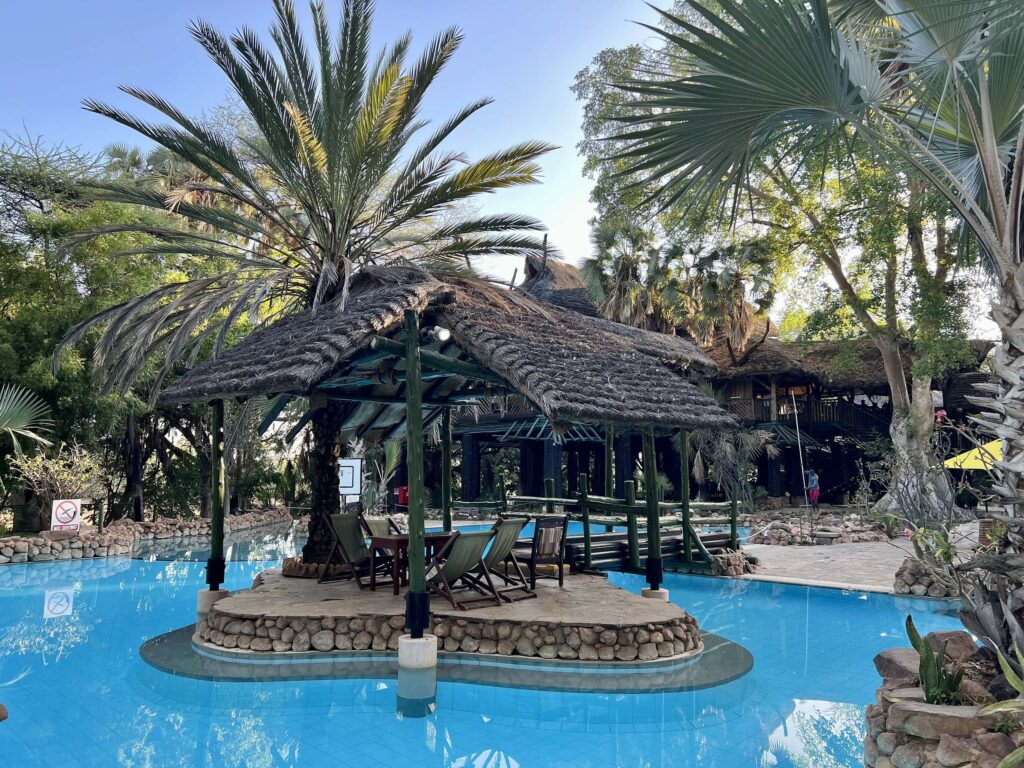 A lodge like Sarova Shaba Game Lodge obviously offers a spa, massage services, a nice restaurant, and amazing staff. The property is situated along a river with crocodiles just outside the fence. The herders who bring their camels to the river, however, seem unbothered by the giant reptiles.